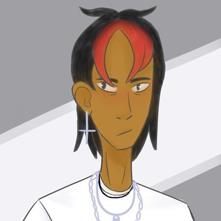 Crimson Crisis is my passion project. It's a visual novel (...or it will be, when I get around to working on it) about a Battle of the Bands competition with an LGBT theme. It takes place in the fictional town of Destino, California, and features the characters you see here, as well as some others.
